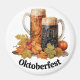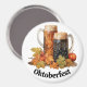 Mugs of light and dark beer with autumn leaves, pumpkins and Oktoberfest text...magnet
