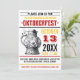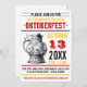 A combination of modern and vintage style Oktoberfest celebration party invitations featuring a vintage beer stein, sample text fields, and borders in a black, yellow, red, and white colour palette.