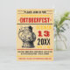 A combination of modern and vintage style Oktoberfest celebration party invitations featuring a vintage beer stein, sample text fields, and borders in a black, yellow, red, and white colour palette.