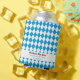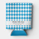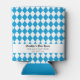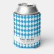 Oktoberfest Can Cooler personalised your custom text and gothic mediaeval style typography. Design features a diamond lozenge pattern in Bayern blue and white. Ideal for personal use or business promotion.