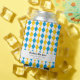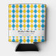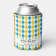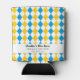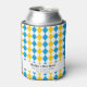 Oktoberfest Can Cooler personalised your custom text and gothic mediaeval style typography. Design features a diamond lozenge pattern in Bayern blue, white and yellow. Ideal for personal use or business promotion.