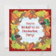 Super cute Oktoberfest dachshund Party Invitation with two dogs with festive hats chase each other in a circle with autumn leaves and acorns. Hand drawn illustration by McBooboo. \