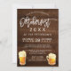 Oktoberfest (Octoberfest) festival party white typography rustic brown wood, celebrate the traditional German Bavarian beer festival. A modern mixed with rustic invitation with white Oktoberfest typography on rustic brown wood with 2 pints of beers.