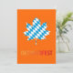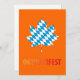 Contemporary Oktoberfest party invitation. Maple leaf silhouette in Bavarian colours on orange background. Replace placeholder text with your invitation wording.