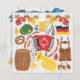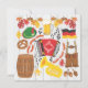 Oktoberfest Party Invitation with beer barrel, beer mug, pretzel,accordion, tuba, hat, laderhosen, flag, wieners, acorns . Hand drawn illustration by McBooboo.