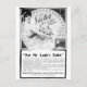 An advertisement for Violet (Ve-o-lay) Paris perfumes, soaps, sachets and toilet requisites. A lady in 1900s costume holds a bunch of flowers in her skirt.