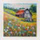 Old barn in wildflower field impressionism painting.