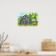 Old Blue House Pen and Ink Drawing Watercolor Poster