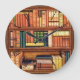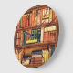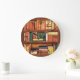Custom wall clock featuring a vintage illustration of colourful old books on wooden bookshelves and Roman numerals (can be removed). A fun clock for study or the room of an avid reader, teacher, librarian, writer, or any book lover.