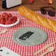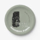 Customisable 70th birthday party paper plate with a retro illustration of a camera. You can easily change text (font, size, colour and position) and background colour by clicking the personalise or customise button. Matching birthday party paper napkin, Birthday save the date (postcard) and birthday guest book.