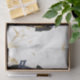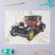 Old car on white and gold marble tissue paper for stuffing gift bags or decoupage.