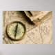 Old Compass Over Ancient Map Poster
