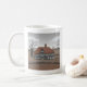 Colourful artwork of an old timber-framed farmhouse in the English countryside, with an old windmill in the background, and some crows who have come to visit. Perfect for anyone who loves folk art.