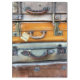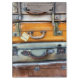 Old suitcases from the 1940's stacked on the railway station platform ready to be collected by the owners. England UK.