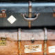 Old suitcases from the 1940's stacked on the railway station platform ready to be collected by the owners. England UK.