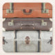 Old suitcases from the 1940's stacked on the railway station platform ready to be collected by the owners. England UK.
