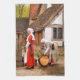 Two Tudor ladies washing water tubs at the water pump. England UK.