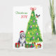 Old English Sheepdog, Bird and Christmas Tree Holiday Card