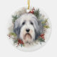 Old English Sheepdog Christmas Wreath Festive Pup Ceramic Tree Decoration