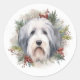 Old English Sheepdog Christmas Wreath Festive Pup Classic Round Sticker