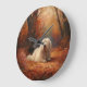 Old English Sheepdog in Autumn Leaves Fall Inspire Large Clock