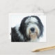 A super cute shaggy dog photo! This Old English Sheepdog gift has the dark grey and white herding breed in front of a white background. Adorable dog lover gifts!