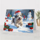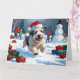 Old English Sheepdog Running in Snow Christmas Hat Card