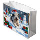 Old English Sheepdog Running in Snow Christmas Hat Large Gift Bag