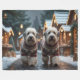 This festive design captures the joyful spirit of the holiday season, featuring an adorable dogs.Nestled in a winter wonderland, complete with a decorated Christmas tree, and beautifully wrapped presents. Snowflakes gently fall, adding a magical touch to the scene, while the vibrant colours of the holiday decorations create a warm and cheerful atmosphere.
