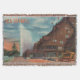 Throw blanket with a vintage image of Old Faithful gieser in Yellowstone National Park and the historic lodge.