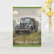This birthday card features an old vintage farm truck on a hazy morning in the meadow.