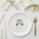 This adorable fall baby shower paper plate is a sweet way to offer food for your guests. This design features a light green vintage truck carrying a pumpkin home from the patch, on a white background.