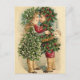 Old Fashion Holly Kids Kissing Christmas Holiday Postcard