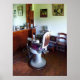 Design of an old fashioned barber shop with a vintage barber chair and barber supplies on the counter,