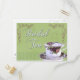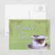 Old fashioned bridal tea invitation card and matching postage with delicate floral tea cup and bridal tea in white script font.