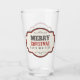This gorgeous holiday pint glass has a vintage label on it that says, "Merry Christmas Happy New Year". It is part of nice assortment of Christmas holiday beer glasses attainable from Superkalifragilistic.