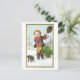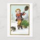 Old-fashioned Christmas, Boy with Puppy Holiday Postcard
