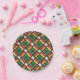 Festive Christmas plates with a plaid pattern made out of old fashioned candies.