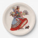 Paper plates with a 1900s Victorian, young couple heading home from a day of Christmas shopping. Walking through the snow with packages and Christmas wreath their little dog proceeds them to create a charming holiday image.