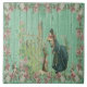 Old Fashioned Ceramic Tile with child, bunny, and playful roses all set against a wood background. This custom tile makes the perfect gift for people who enjoy vintage items.