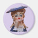 Old Fashioned Lady Head Vase Hat Hand Eyelashes Magnet