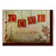 Old fashioned vintage love necklaces deorate this LOVE card Eiffel tower faint in the background with antique vine of roses. Great card to announce engagements, save the date, Valentine's Day, weddings or other special occasions.