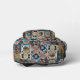 A colourful quilt with an assortment of patchwork patterns is displayed, each square featuring different designs and fabrics.