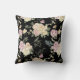 Old Fashioned Pink Roses Chintz Pattern on Black Cushion