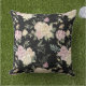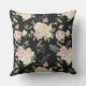 Old Fashioned Pink Roses Chintz Pattern on Black Cushion
