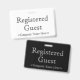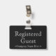 This old fashioned badge design features the message "Registered Guest", and a customisable company name or other custom message. A badge like this could perhaps be used to indicate that a person is a known and authorised guest or visitor at a business or workplace. [~Z0000307]