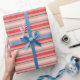Old Fashioned Retro Christmas Stripe Pattern Pink Wrapping Paper