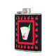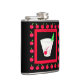 Enjoy taking your favourite alcoholic beverage with you with this flask that you can personalise with your name on the back. This flask is created with original art of an old fashioned drink on black background with a red border surrounded by red cherries. The drink and ice are outlined with grey lines and the drink has a red cherry and green umbrella. This original art is by Phyllis Dobbs and coordinates with other old fashioned products and other retro drink art selections. Great gift idea for someone who loves Old Fashioned drinks. Fully customisable.