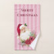 Old Fashioned Santa Claus Cranberry Floral Stripe Hand Towel