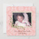 Birthday party invite on damask with personalised photo and flowering branch and ribbon